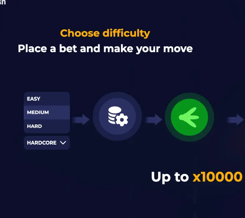 В Uncrossable Rush доступны четыре уровня сложности: Easy, Medium, Hard и Hardcore. Они выбираются как прямо на основном экране, так и в блоке Difficulty в Auto Settings. На Easy трафик спокойнее, опасных ситуаций меньше, а множители растут более плавно — это режим для аккуратной игры и теста тактики. Medium добавляет больше машин и резких манёвров: риски повышаются, но и потенциал коэффициентов становится заметно интереснее.